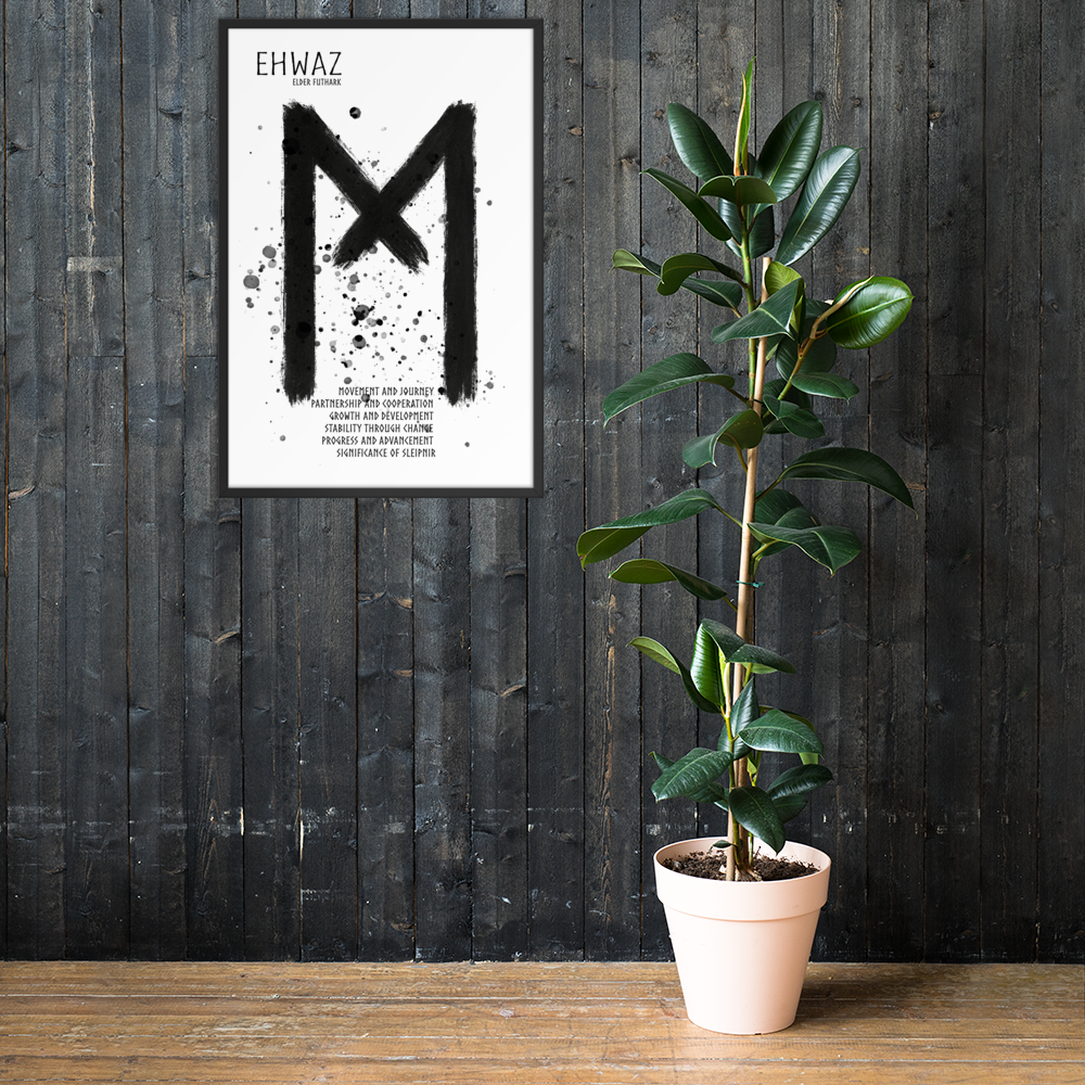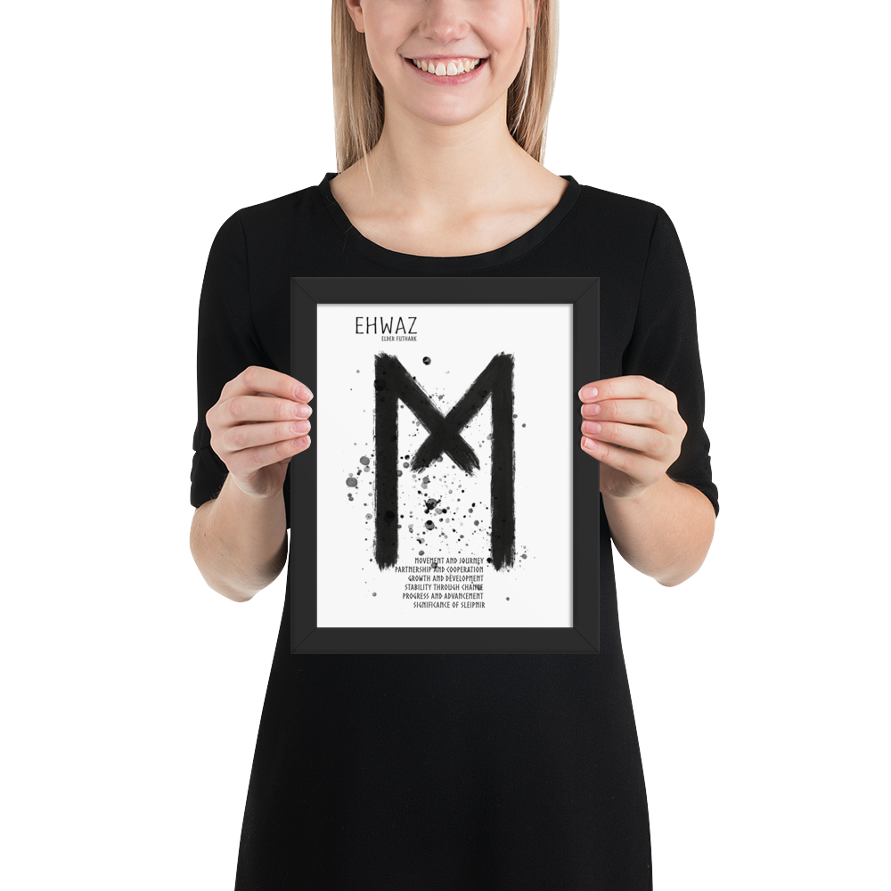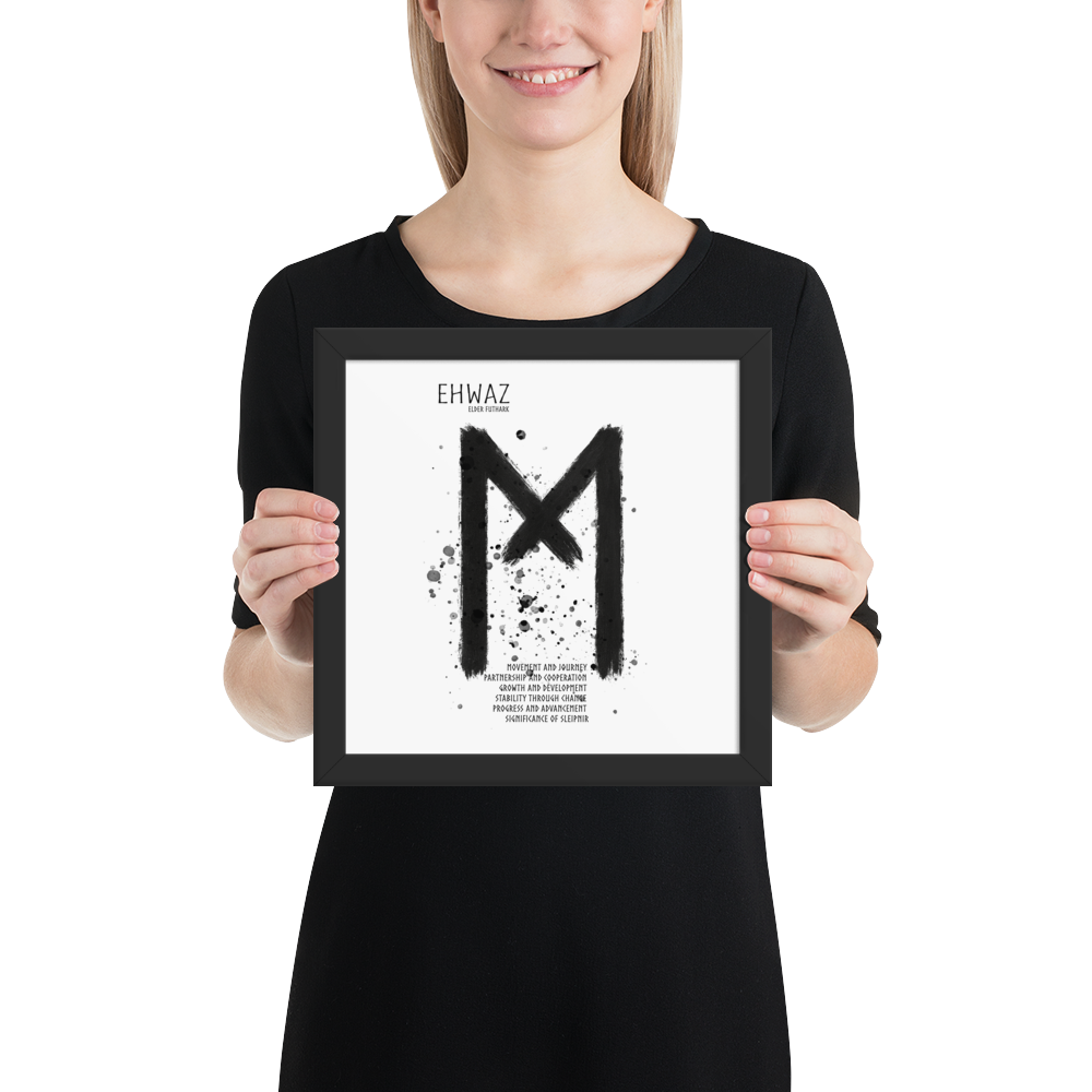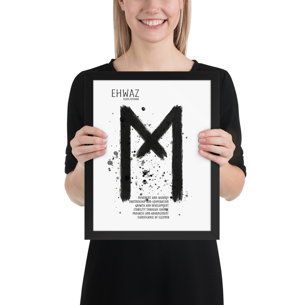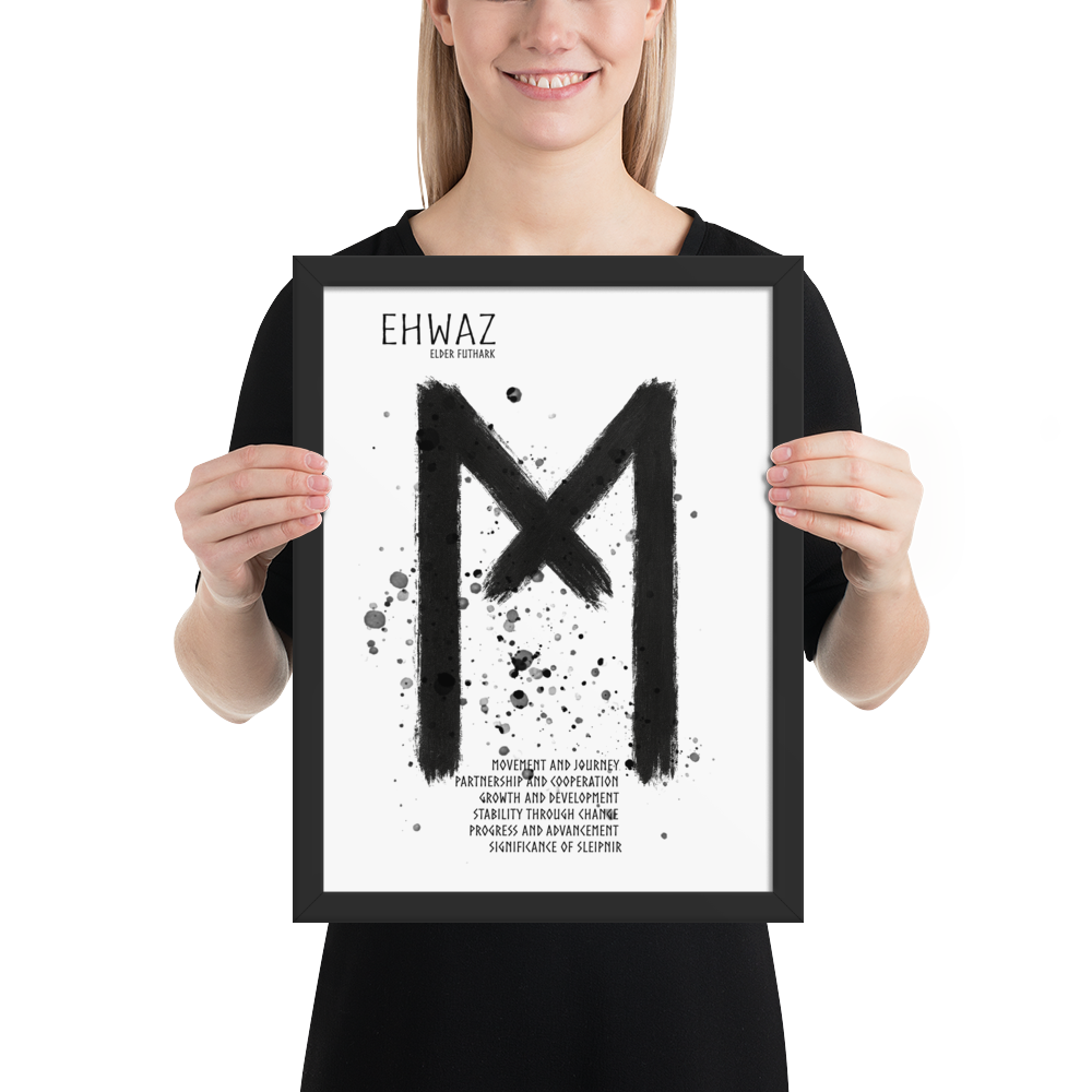 Trots att Ehwaz handlar om rörelse och förändring, bär den också på en känsla av stabilitet. Den påminner om att verklig framgång och balans uppstår när man rör sig framåt i samklang med andra – med tillit och stadighet i sin resa.