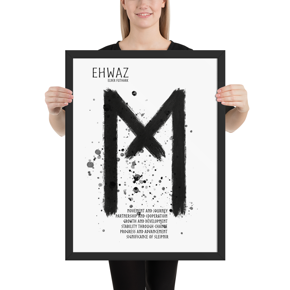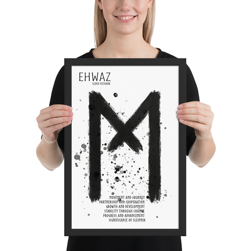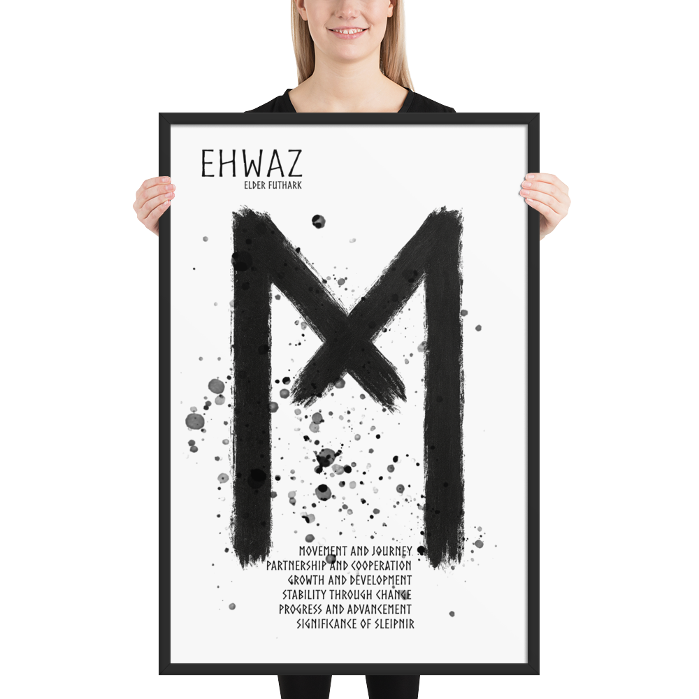 Ehwaz är nära knuten till Sleipnir – Odens åttafotade häst i nordisk mytologi. Sleipnir symboliserar hastighet, rörelse mellan världar och den kraft som förbinder det materiella med det andliga. På samma sätt representerar Ehwaz resan mellan olika tillstånd av medvetande och utveckling.