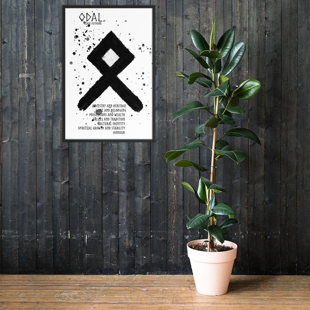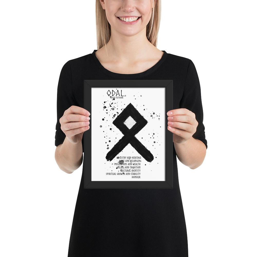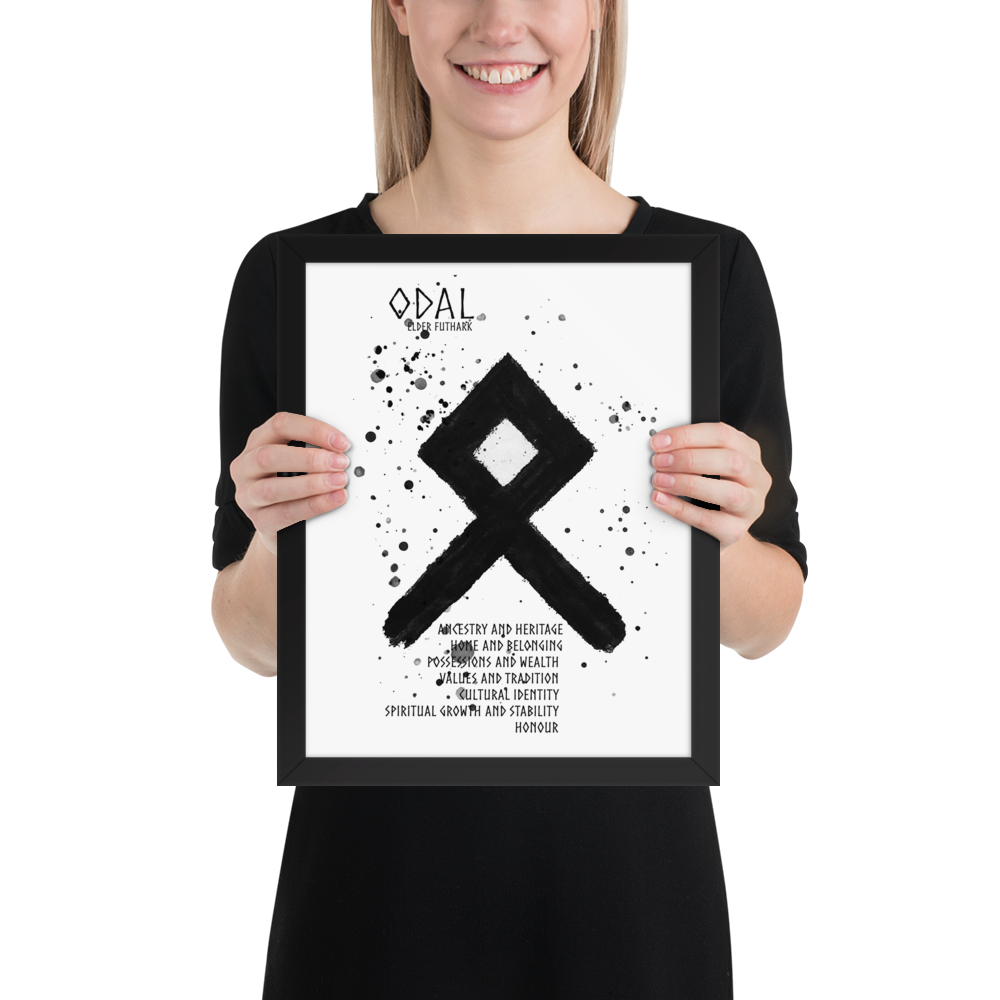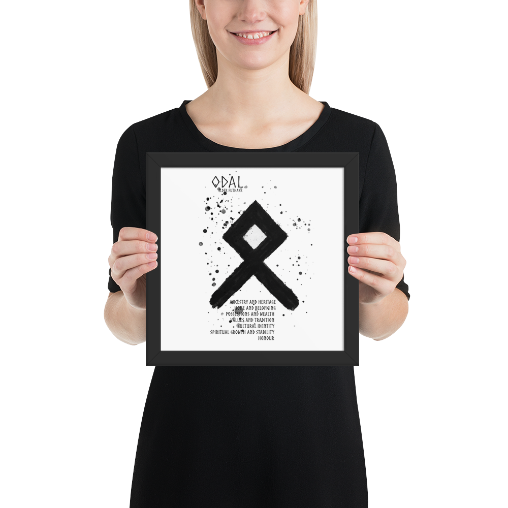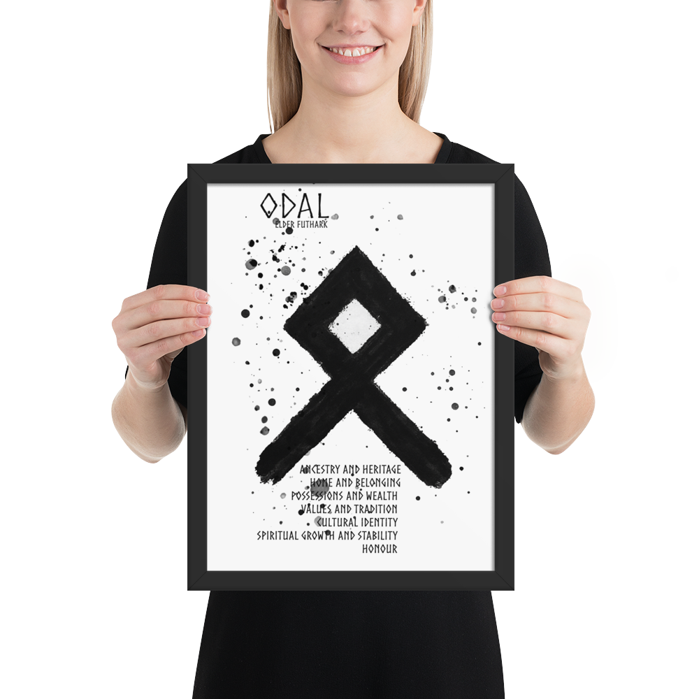 Odal symboliserar begreppet arv, släktband och det som förs vidare genom generationerna. Den representerar dina rötter, din historia och det arv dina förfäder lämnat efter sig – både materiellt och andligt. Runan påminner om att du bär med dig deras styrka, visdom och traditioner.