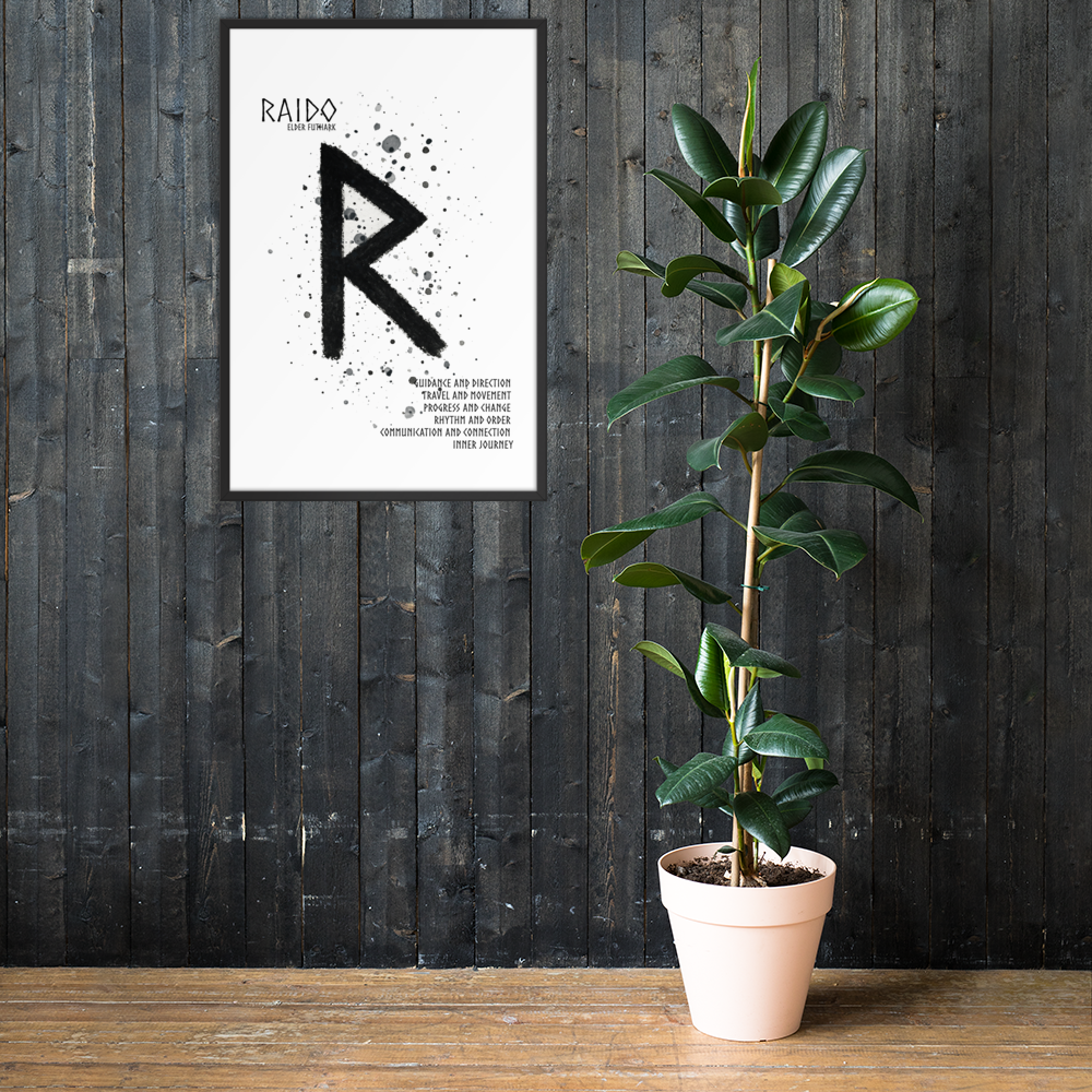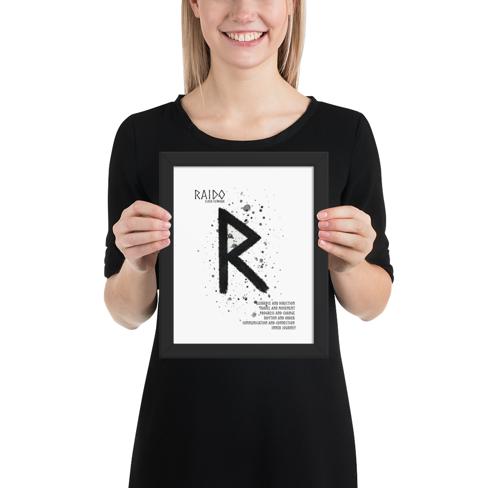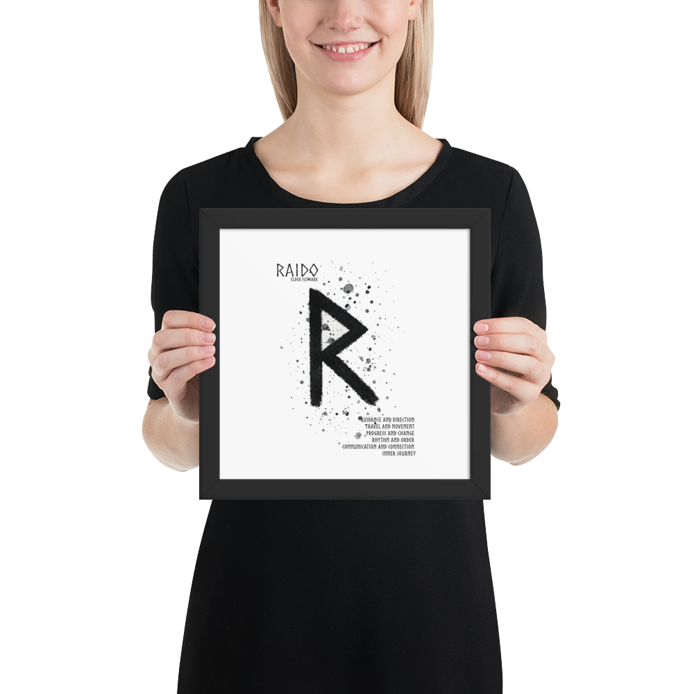 Raido förkroppsligar även rytm och livets naturliga cykler. Den påminner om vikten av att leva i takt med naturens ordning – att förstå och acceptera livets början, förändring och avslut som delar av ett större flöde.