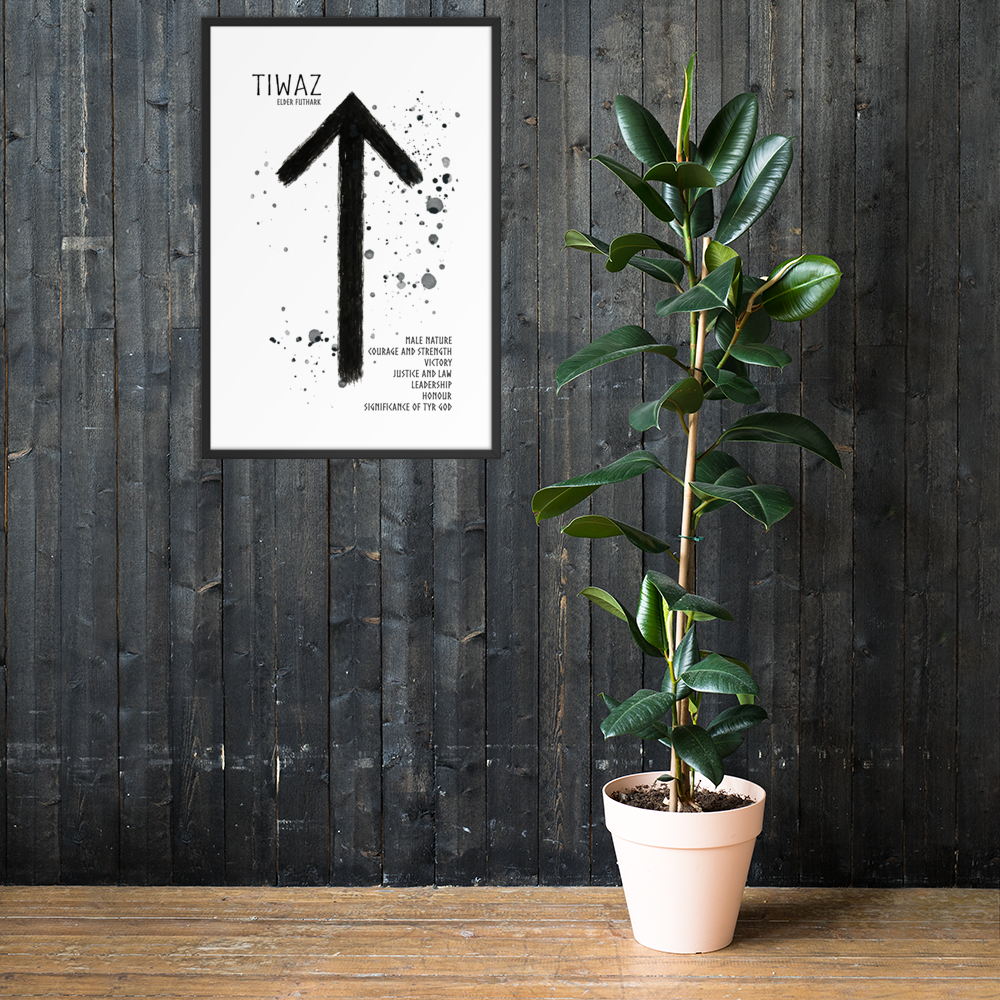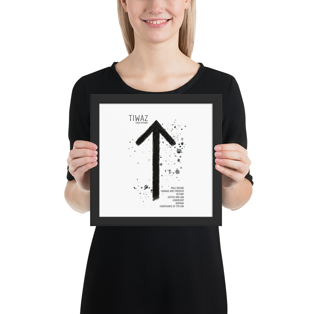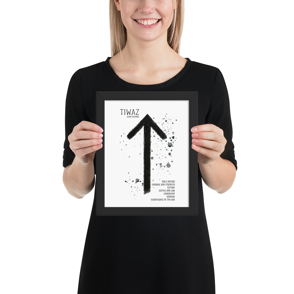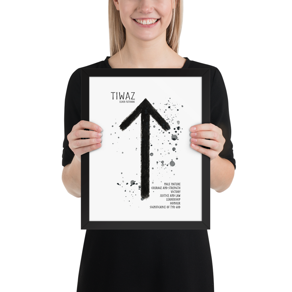 Runan Tiwaz är nära knuten till guden Tyr – den modige och rättfärdige krigsguden i nordisk mytologi. Den representerar hans anda av uppoffring, mod och rättvisa.